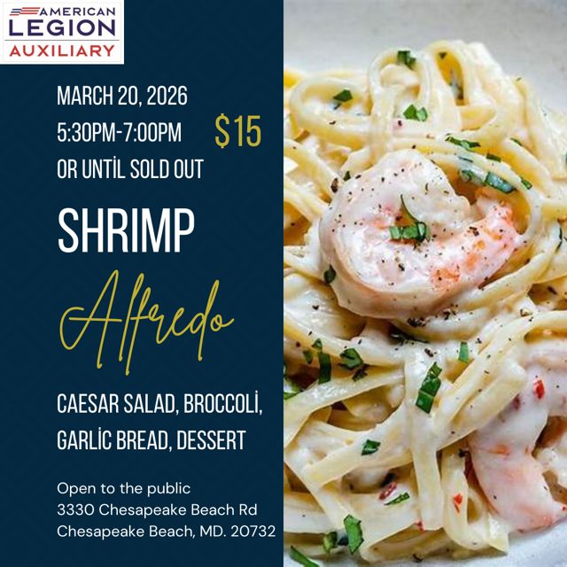 Come on down or up for a Shrimp Alfredo Dinner. Open to the Public